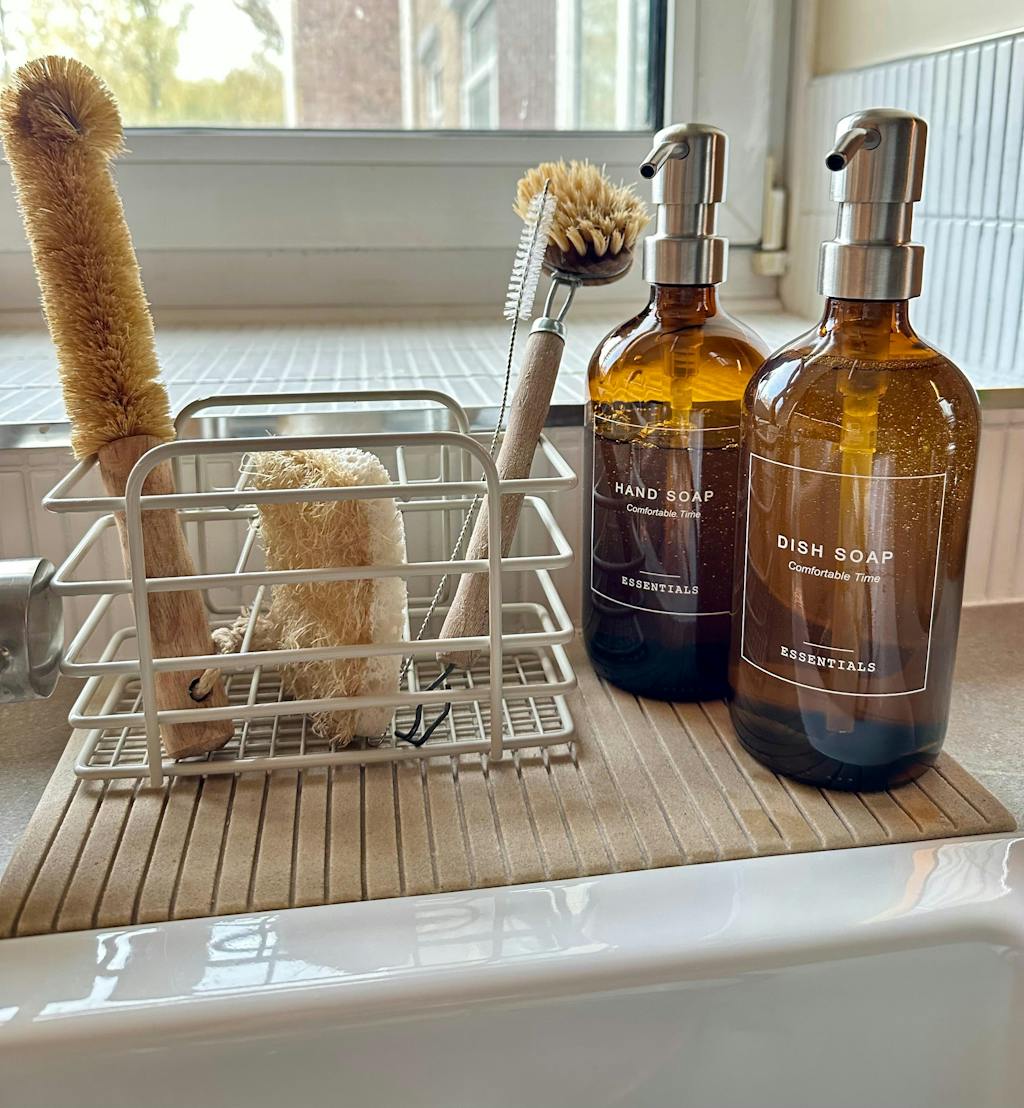 Exclusively available from Paper & Ink, our Boston style 500ml glass bottles are the perfect blend of functionality, style and sustainability. They are versatile and come with a choice of five designs for: hand soap, dish soap, shampoo, conditioner and body wash. What sets them apart from our labelled bottles is their sleek, fuss-free design - no labels, just beautiful designs printed directly onto the glass. The amber glass not only adds a touch of elegance, but also helps protect the liquid inside from harmful oxidation and UV light, preserving the quality of your products for longer.